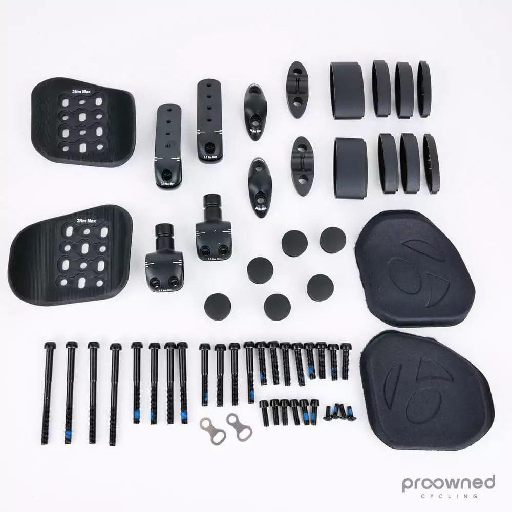 Brand new TT handlebar adjustment kit from Bontrager. It includes everything required to set up your TT position, i.e. spacers, pads, screws, etc.