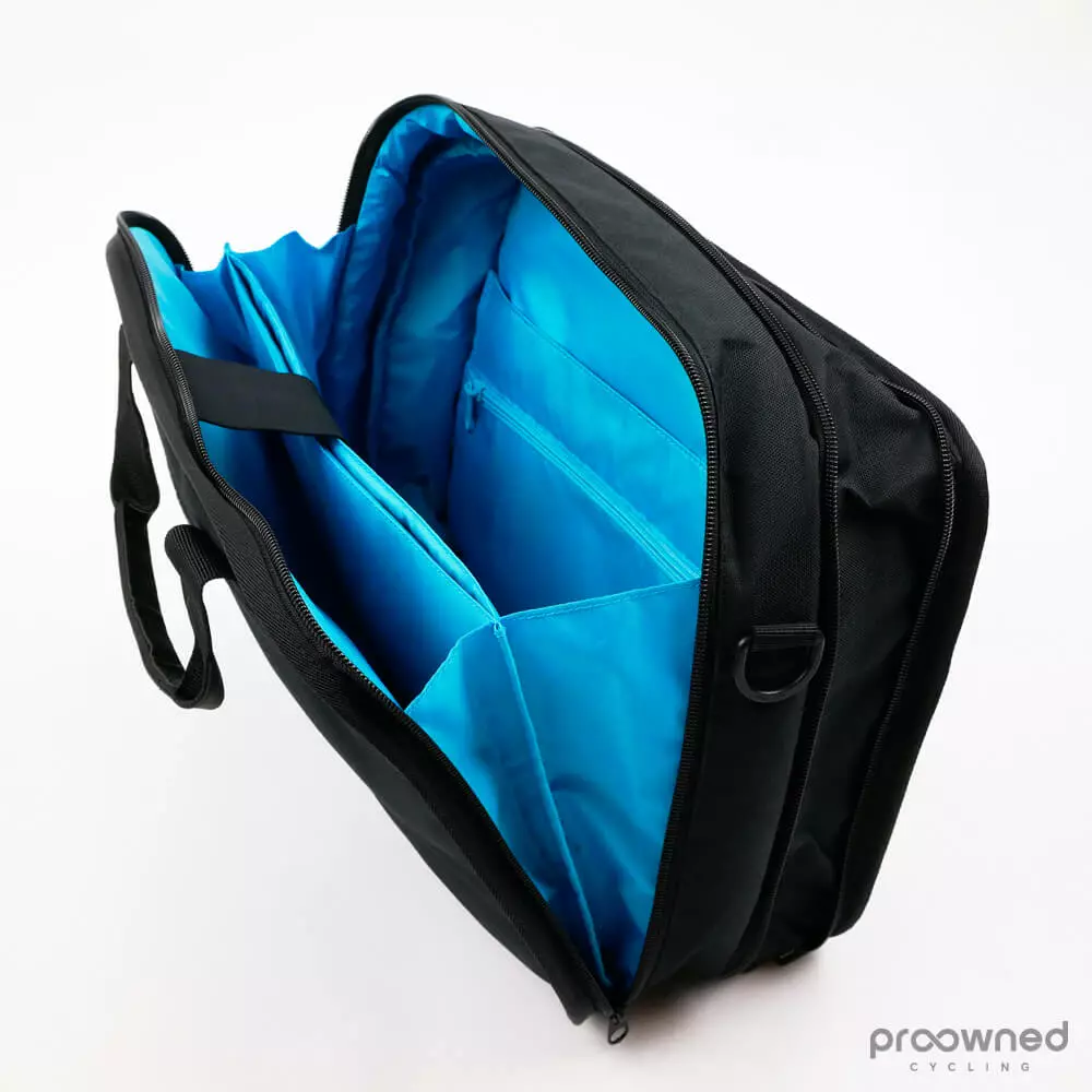 The Race Briefcase is made to store and carry your computer and documents with ease. The Castelli Race Briefcase has a practical design with multiple compartments and slots, including a designated space for your laptop, as well as an adjustable shoulder strap and two top handles. It can slide onto a trolley handle, making it ideal for those who travel.