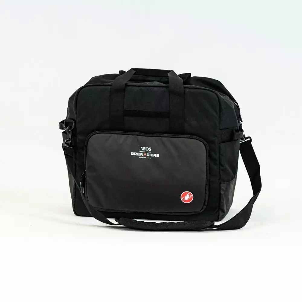 Castelli Weekender Casual bag by Ineos Grenadiers is a duffel bag with plenty of space for travelling to races – Internal compartment is large, with a separate cushioned zipped compartment (computer sleeve) Outer compartment for tickets, passports, and other valuables.