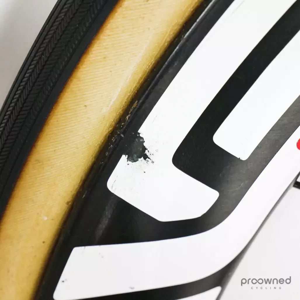 The wheel has some marks and scratches. The scratches are purely cosmetic and don’t affect the strength and the performance of the wheel. Overall, the wheelset is in great condition.