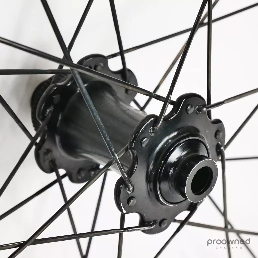 The wheelset is equipped with a combination of Vittoria Corsa Graphene and Corsa Control tires. The tires are used but in good condition.
