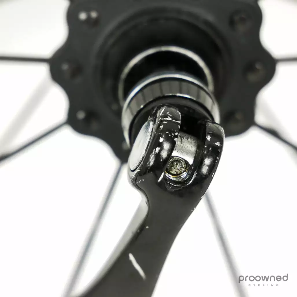 The wheel has some small marks and scratches. They are purely cosmetic and don’t affect the strength and the performance of the wheelset. The brake track is in good condition. Overall, the wheel is in great condition.