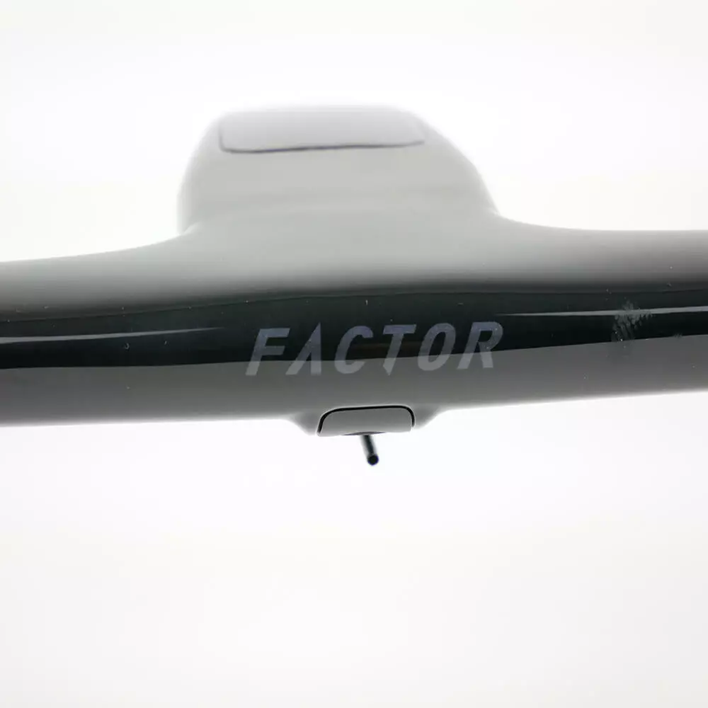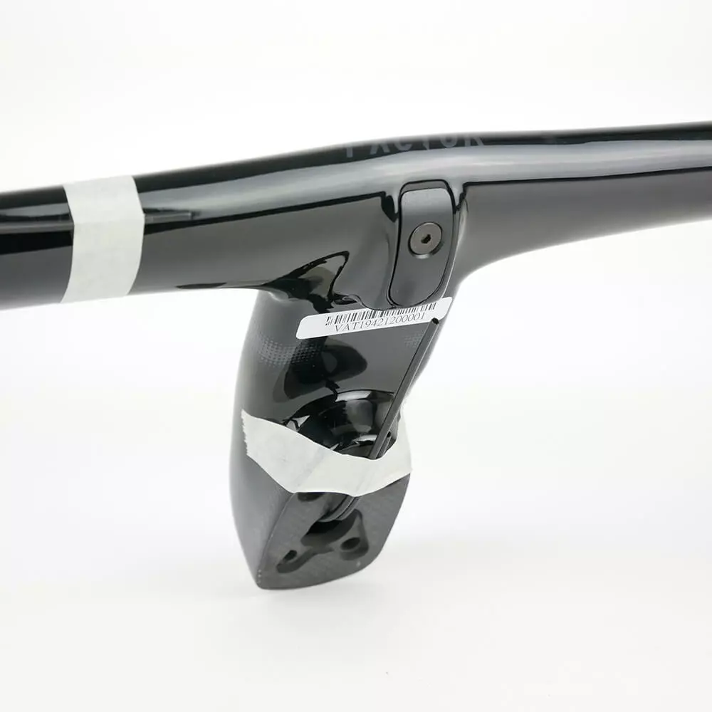 Brand new Factor One Aero carbon handlebar. The Factor One Aero carbon handlebar is made for the Factor One aero road bike for optimized aerodynamics, handling and comfort. The handlebar feature an integrated handlebar and stem design with fully integrated cable routing for completing the aerodynamic and clean looking Factor One bike.