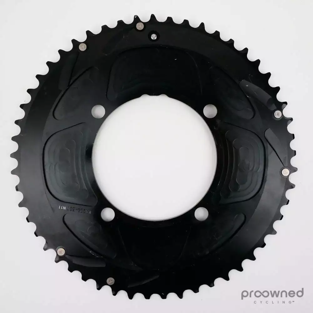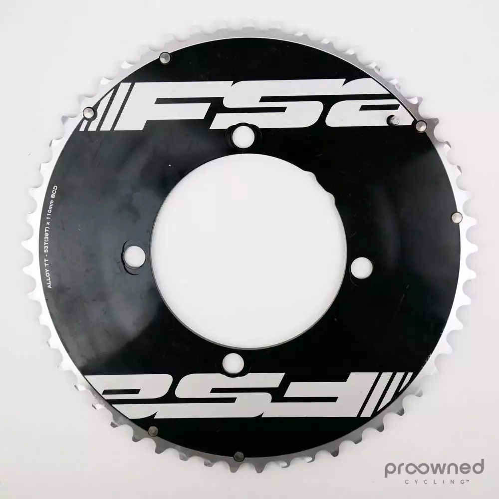 FSA Aero Chainring for 11-speed groupsets. This chainring fits cranksets with four bolts and 110 BCD. With 53 teeth it fits perfectly in combination with a 39T inner chainring. The aerodynamic design makes it perfect for TT’s or any rider who is focused on reducing aerodynamic drag.