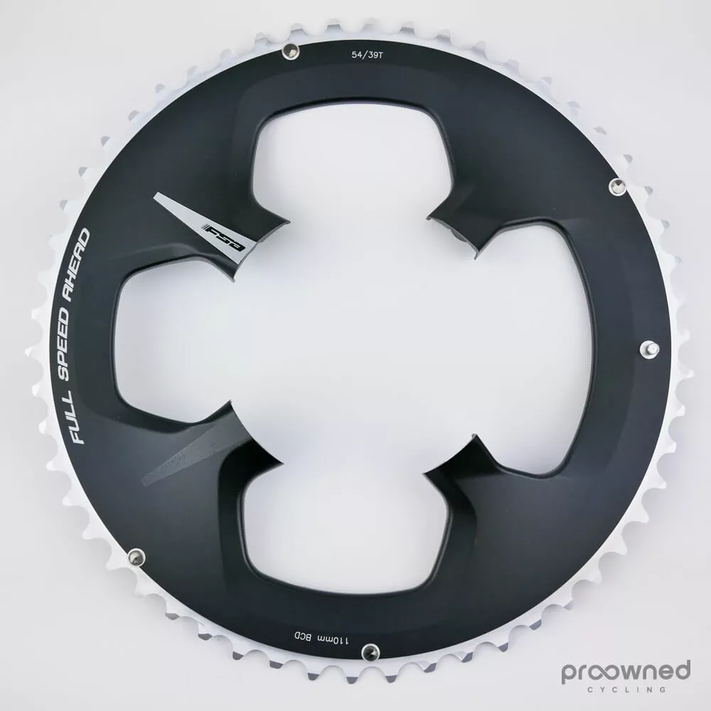 Brand new FSA K-Force Chainring for 11-speed groupsets. This chainring fits FSA cranksets with four bolts and 110 bcd ABS. With 54 teeth it fits perfectly in combination with a 39T inner chainring.
