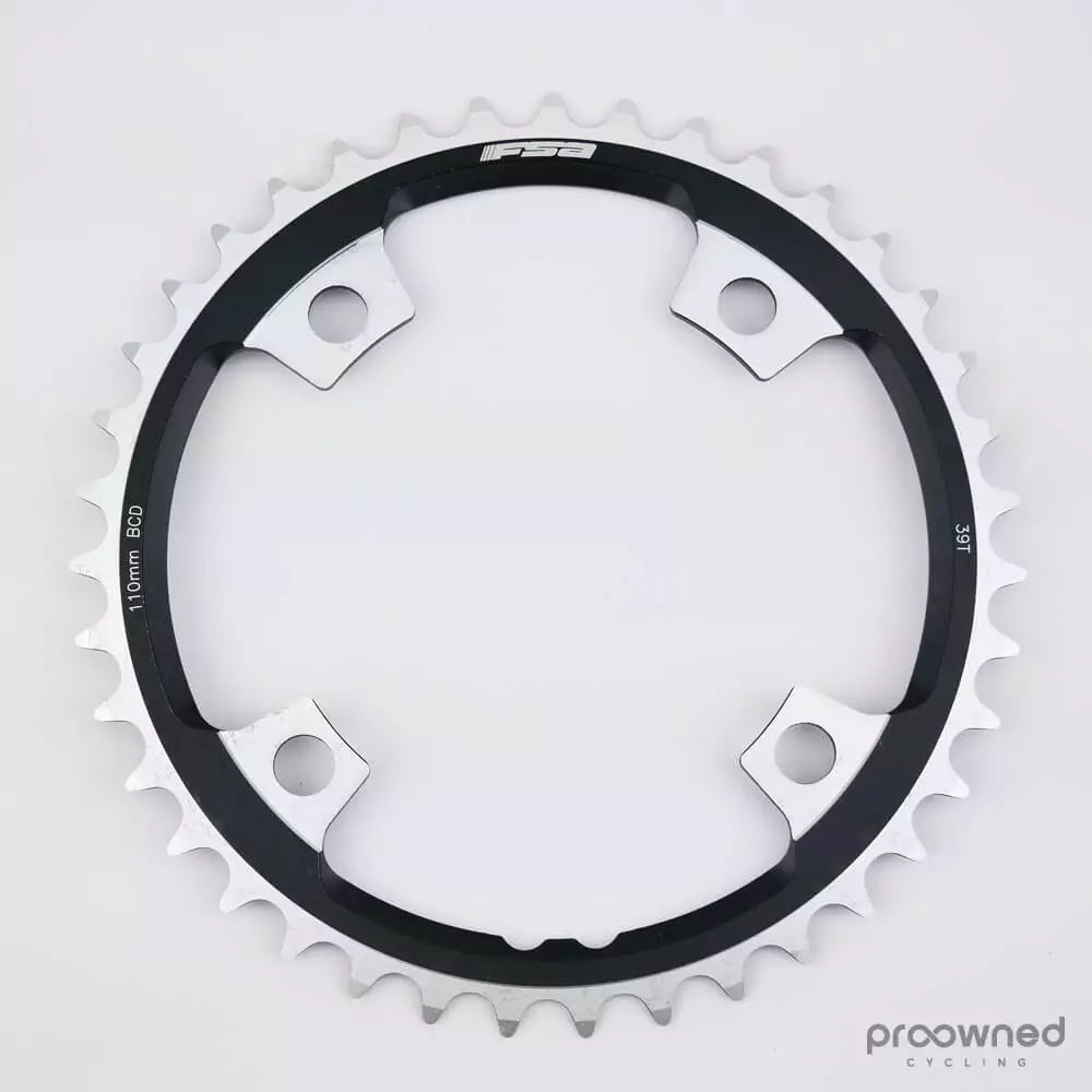 Brand new FSA SL-K ABS Chainring for 11-speed groupsets. This chainring fits cranksets with four bolts and 110 bcd. With 39 teeth it fits perfectly in combination with a 53 outer chainring.