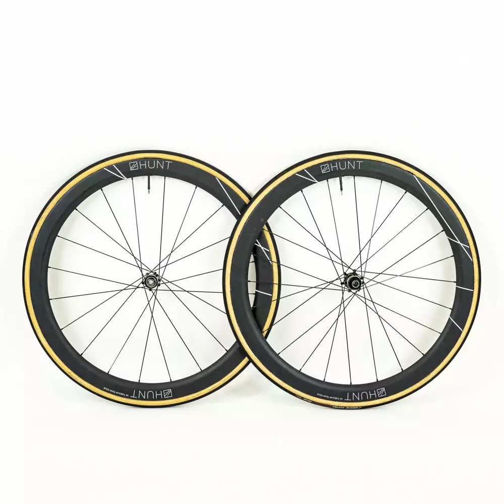 HUNT 45 Team Issue disc wheelset in Carbon with tubular tires.