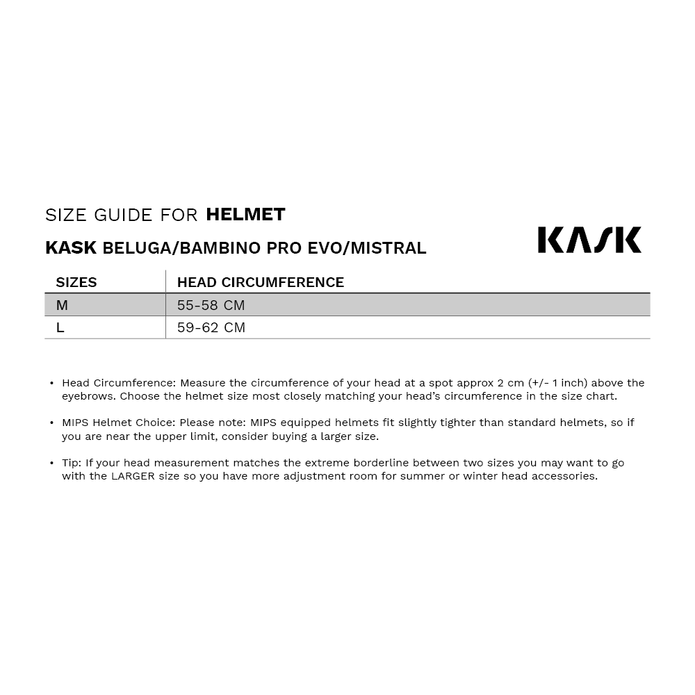The Kask Beluga helmet is a special edition of the race-proven Kask Bambino Pro Evo helmet. The Beluga has the same shape as the Bambino Pro Evo but the tail of the helmet has been cut.