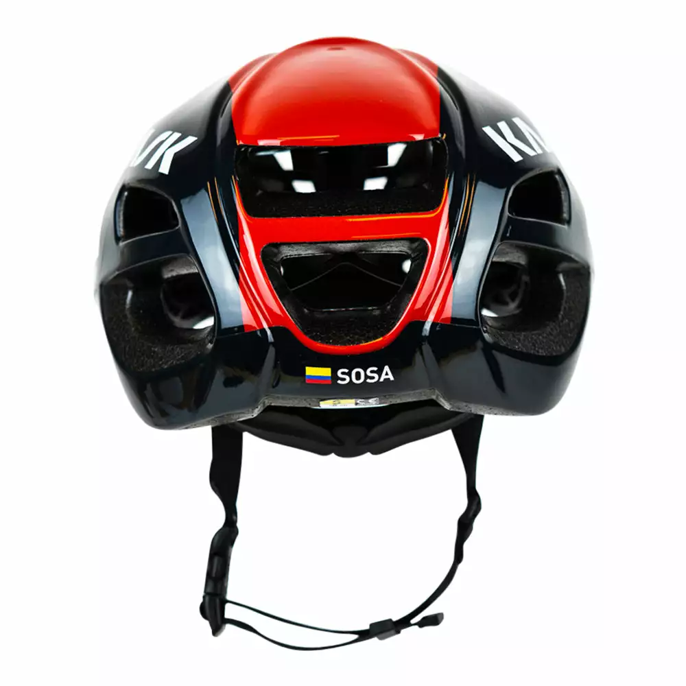 The Kask Protone Road helmet by Ineos Grenadiers offers the ideal fusion of aerodynamic performance, low weight, optimal ventilation, and incredibly fashionable aesthetics. The best road helmet available, designed by Kask has proven itself in the most challenging professional cycling competitions worldwide.