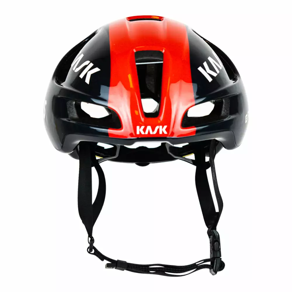 Kask Utopia WG11 Road helmet by Ineos Grenadiers’ design prioritises aerodynamics, with ventilation being another important aspect that was taken into account. Due to its sophisticated design to keep the rider cool, especially when riding at high speed, Utopia is appropriate for road racing and triathlon and can be used year-round in all climates.