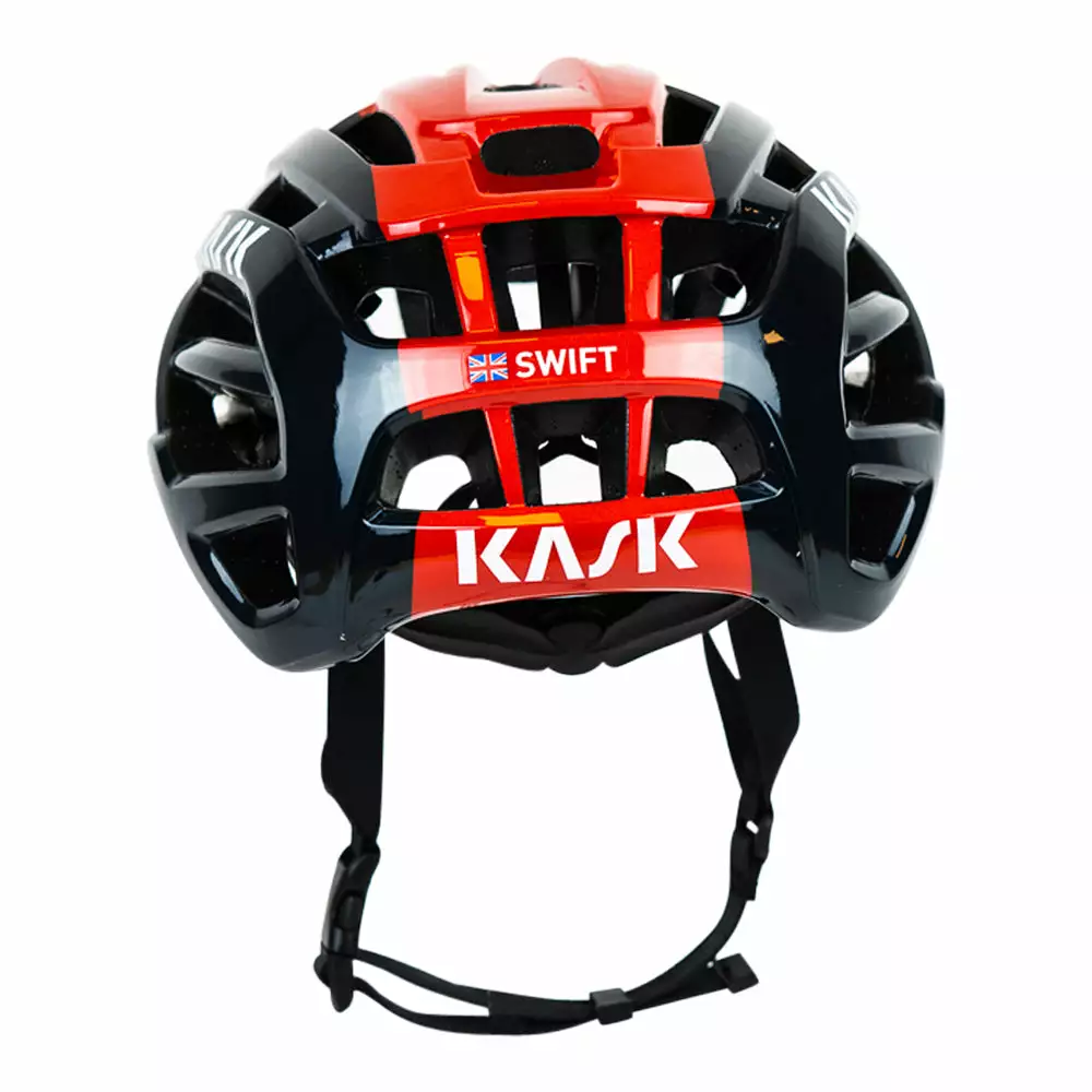 Kask uses multi-in-molding technology to create the polycarbonate cover for the top, base ring and rear of the helmet shell. It is bonded to the inner polystyrene cap by Kask’s in-mold technology to improve the shell’s shock absorption. Finally, the upper area is reinforced with an internal undercarriage that enhances impact protection and helps maintain the integrity of the helmet after impact.