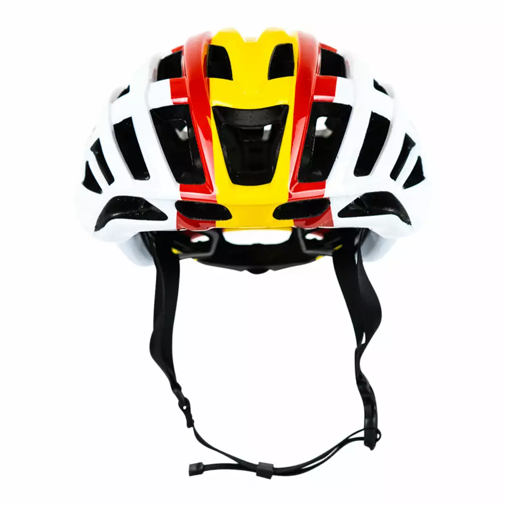 The Kask Valegro Spanish Champion Road helmet by Ineos Grenadiers is super lightweight and designed for optimal ventilation while riding. The helmet is equipped with its 36 vents that allow air to flow through the helmet to keep your head cool.