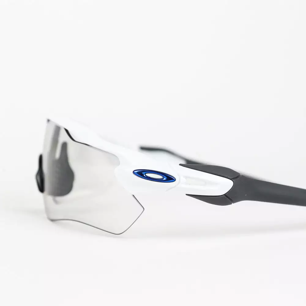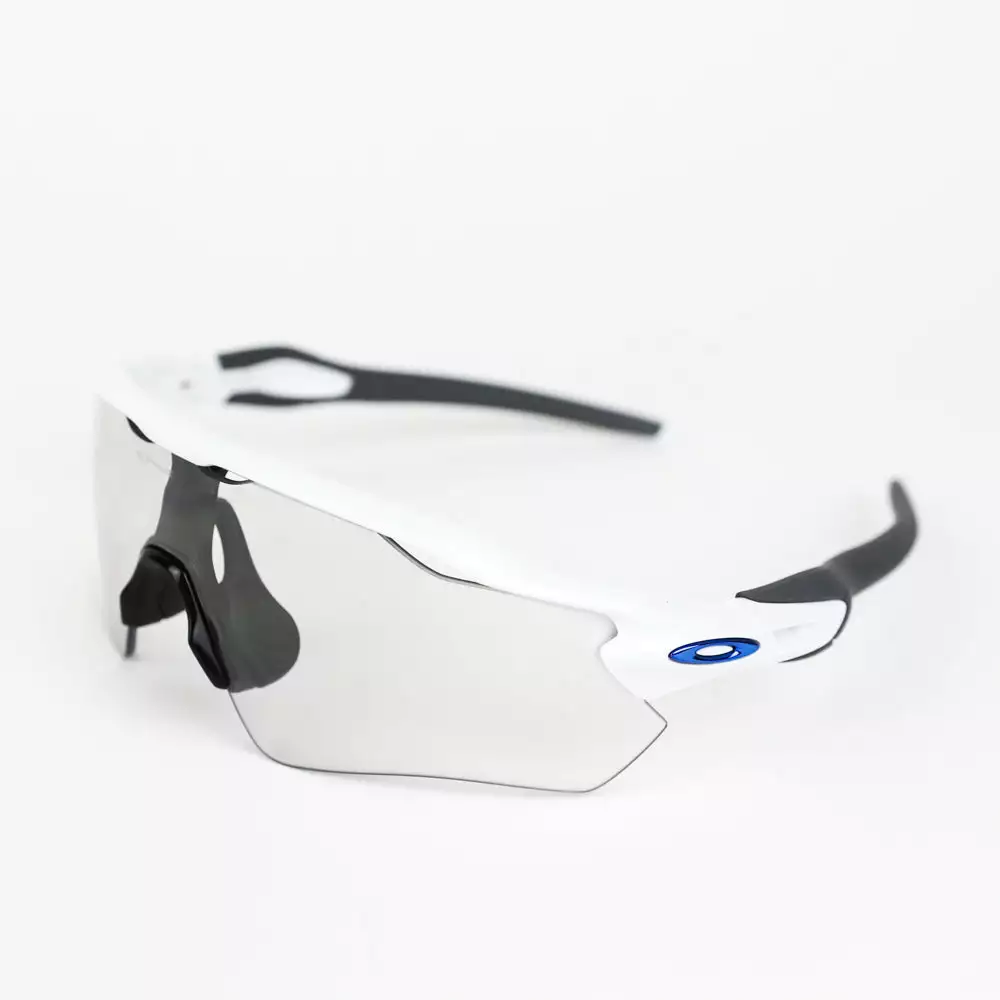Brand new Oakley Radar EV Polished White/Team Blue with a Black Iridium Photochromic lens.