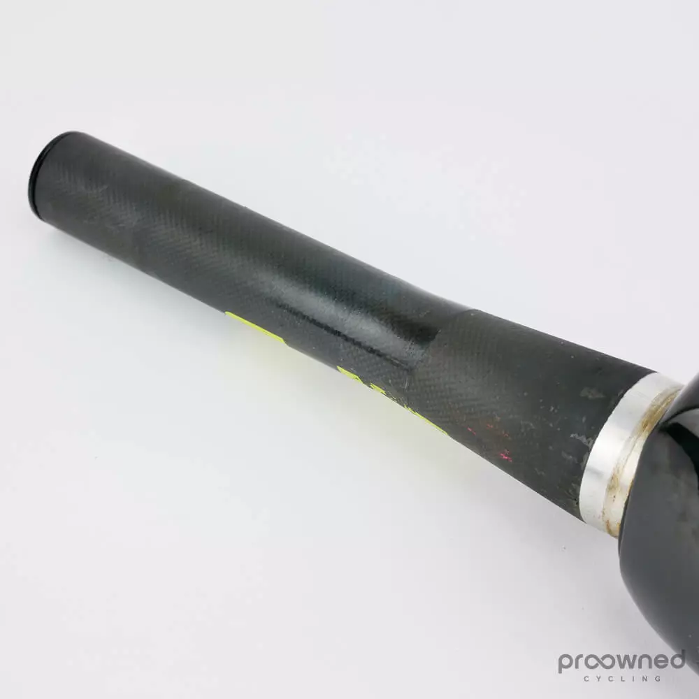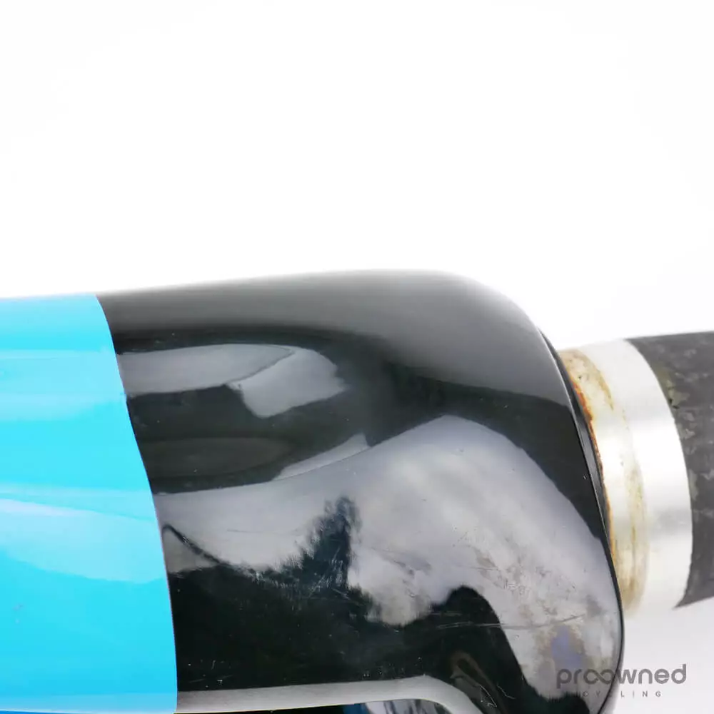 Pinarello Dogma 65.1 fork. The fork fits the Pinarello Dogma 65.1 bike and this has a special Team Sky color scheme. The fork is cut to different lengths. It has some minor scratches on the inside of the fork and the fork legs.