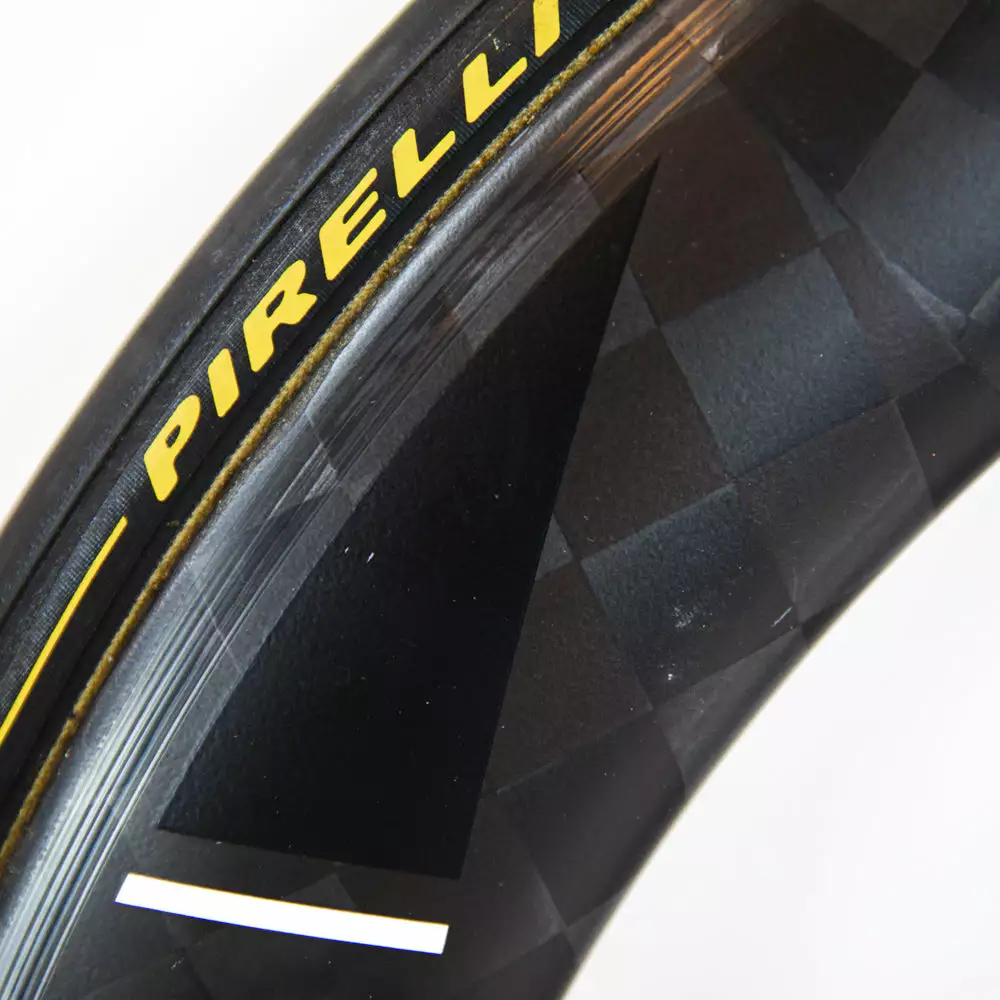 This wheel comes with a Pirelli P Zero Velo tubular tire mounted by the team mechanics. The race-ready lightweight tire is a fast and durable choice and offers great puncture protection as well as speed. The P Zero Velo is made for racing with low rolling resistance making it perfect for Granfondo raced and shorter high-speed racing.