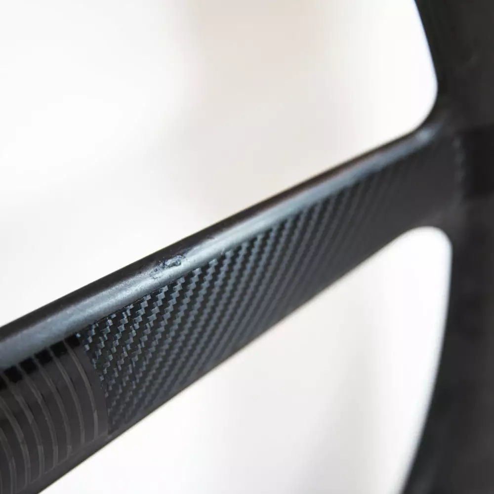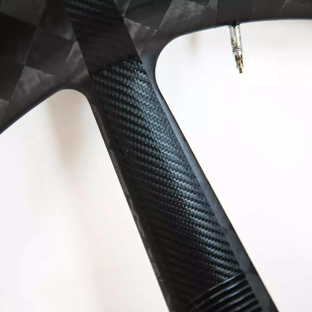 Originally designed in co-creation with former World Tour team Sky and claimed to be the fastest time trial wheel when released. The PRO 3-spoke wheel is reinforced with TeXtreme carbon, leaving a distinctive checkerboard pattern. The special carbon layup offers lightweight, increased stiffness, and high strength – ideal for high speeds in races against the clock.