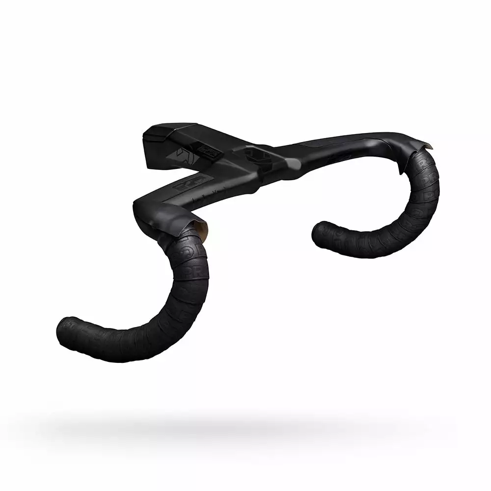 The Vibe EVO carbon handlebar from PRO is a full-integrated stylish and light carbon cockpit. The Vibe EVO is designed to be aerodynamic, ergonomic and stiff. The top section of the handlebar is aerodynamic shaped to cut the wind and features an anti-slip grip. The bend is compact to ensure a rapid transfer from the top of the hoods to the drops.