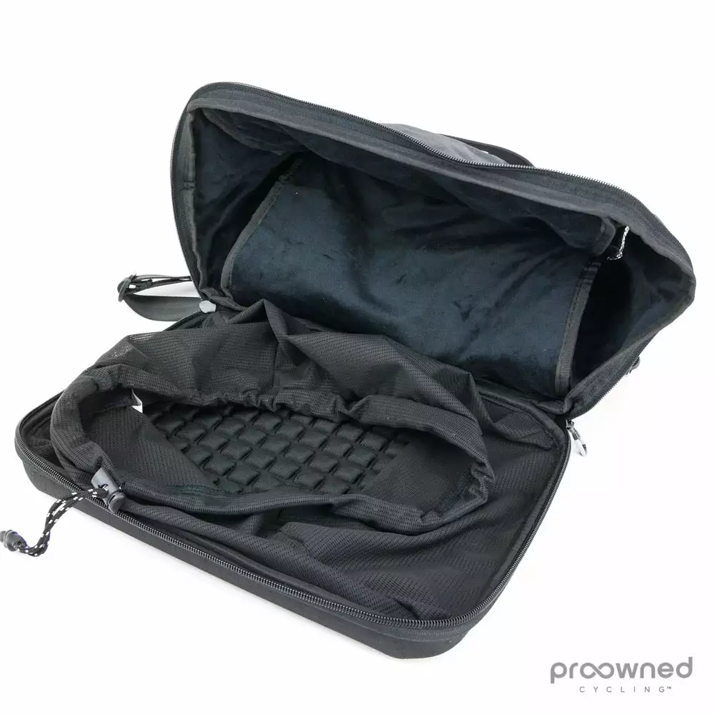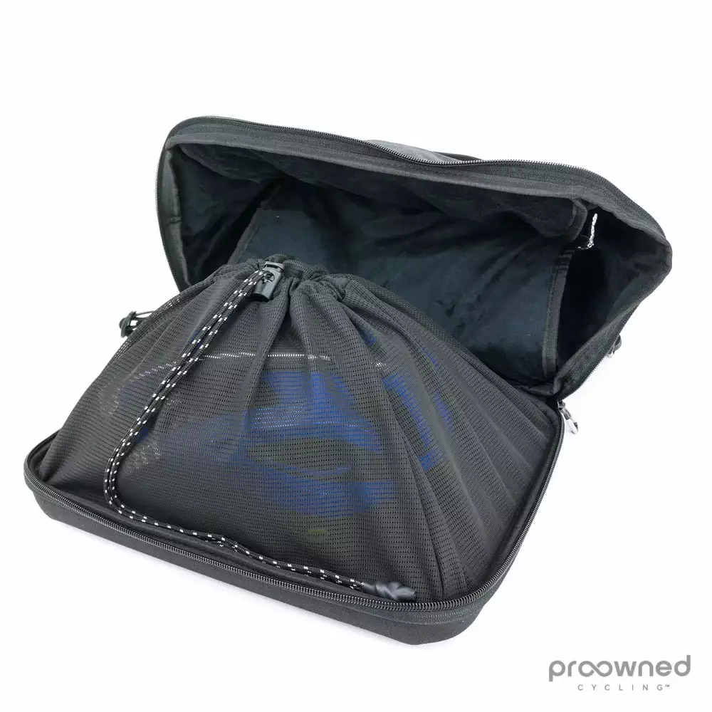 The Helmet bag can contain one time-trial aero helmet, a mountain bike helmet or two road cycling helmets.