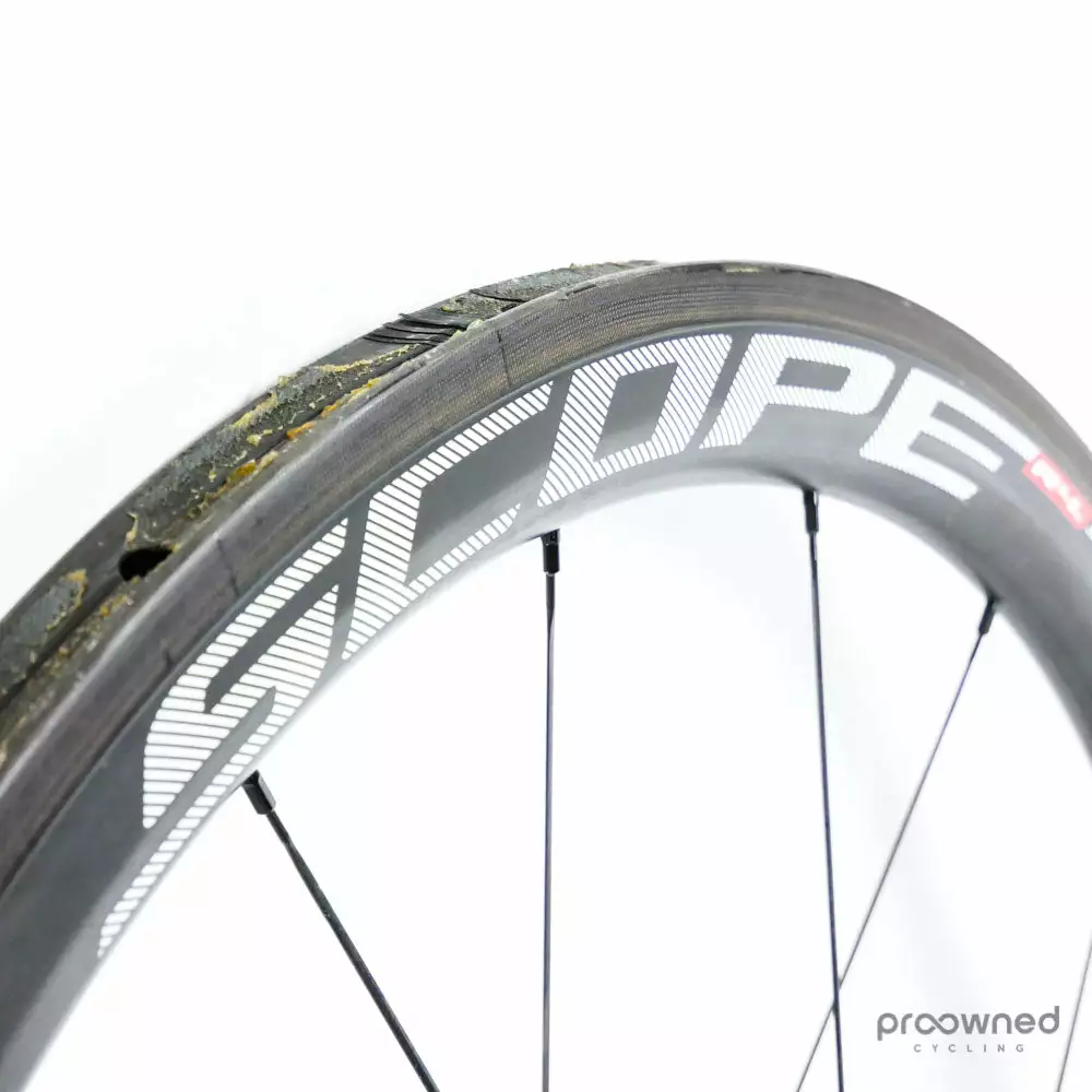 The R4C Wheel is built with a 45mm rim depth making it a perfect all-around wheelset that is deep enough to get the aerodynamic benefits of a deep rim yet low enough to be steady in windy conditions. With an approximate weight of 930g (with tire), the wheel is also a good companion going uphill.