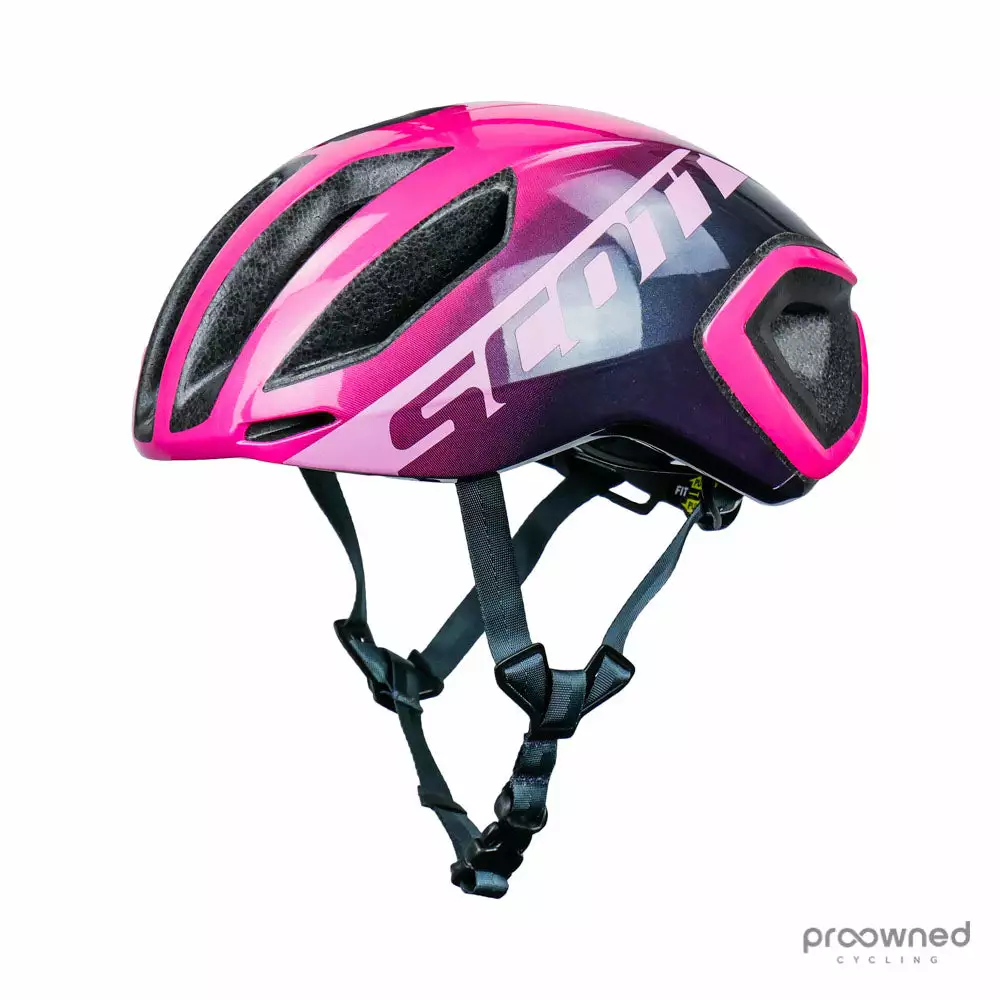 Brand new Scott Cadence Plus Helmet made for team Mitchelton-Scott* for the 2019 season. The helmet was made for if Mitchelton-Scott got the pink jersey at the Giro d’Italia.