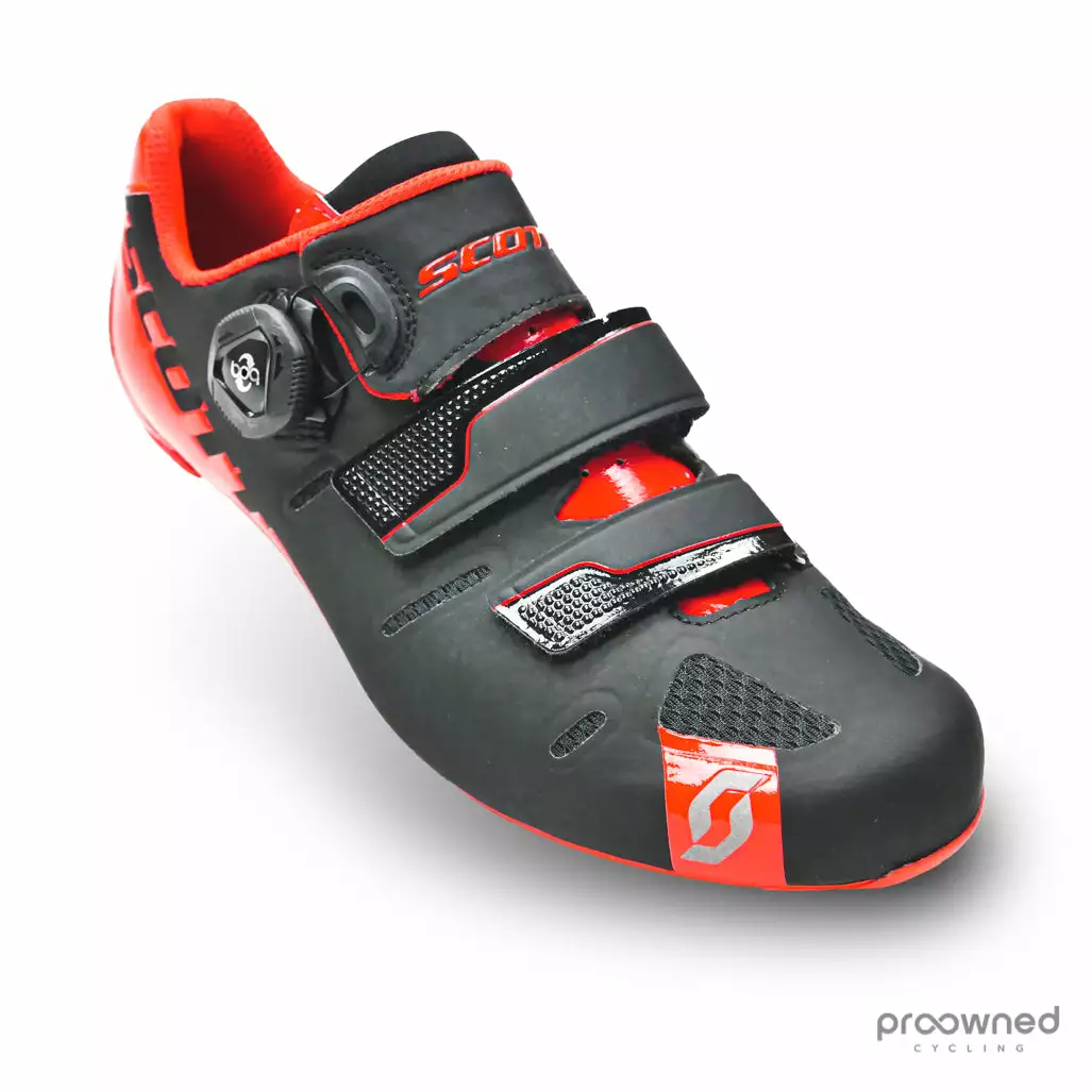 The Scott cycling shoe is a high-performance road cycling shoe that features high stiffness, mainly because of a super stiff and light carbon sole.