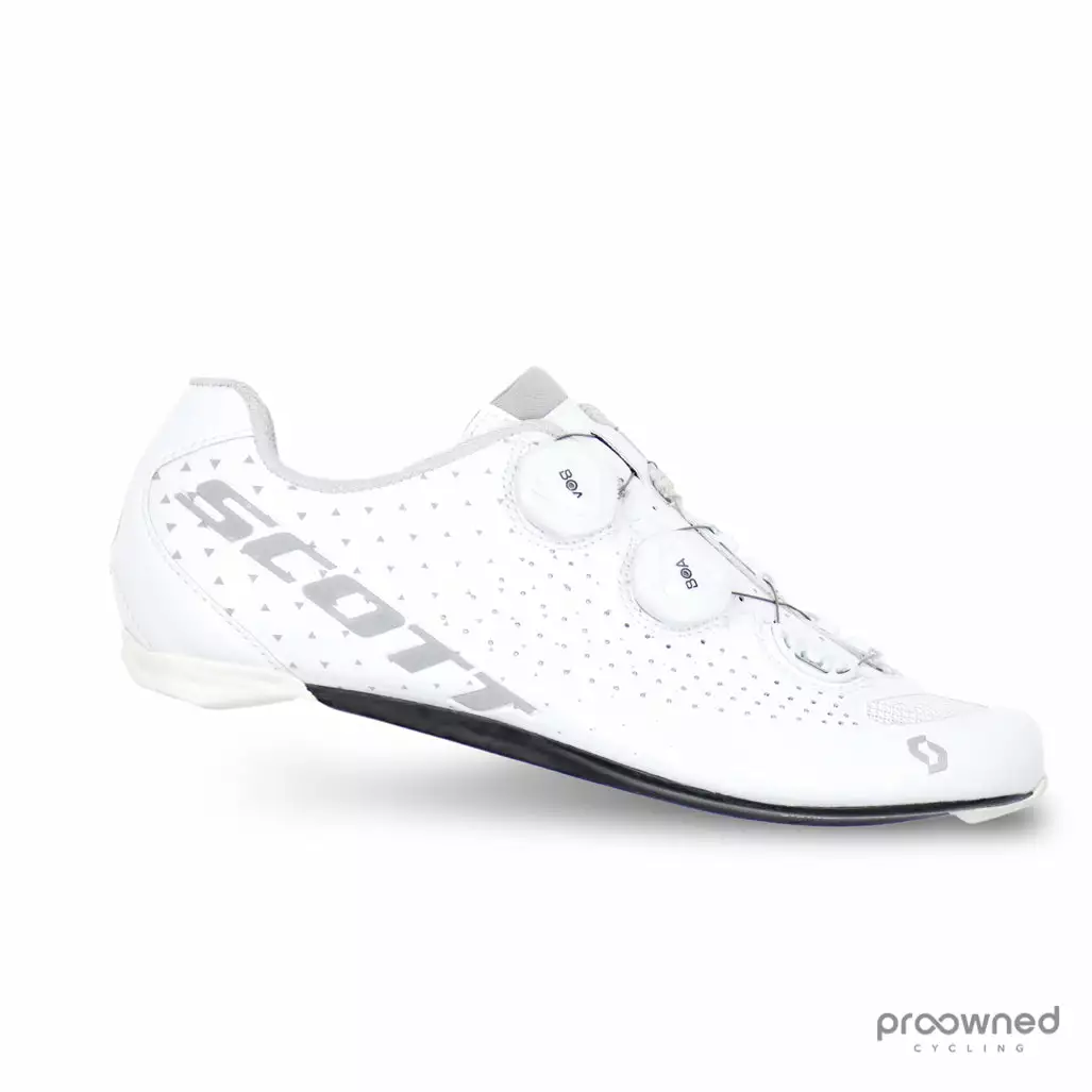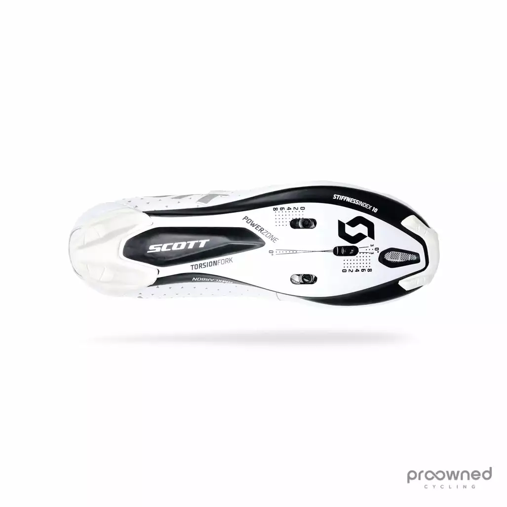 The Scott cycling shoe is a high-performance road cycling shoe that features high stiffness, mainly because of a super stiff and light carbon sole.