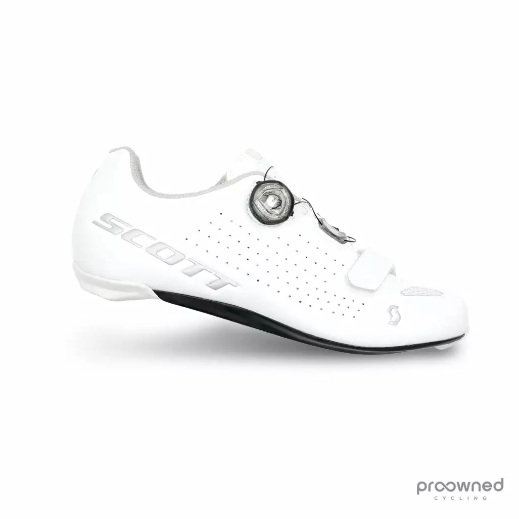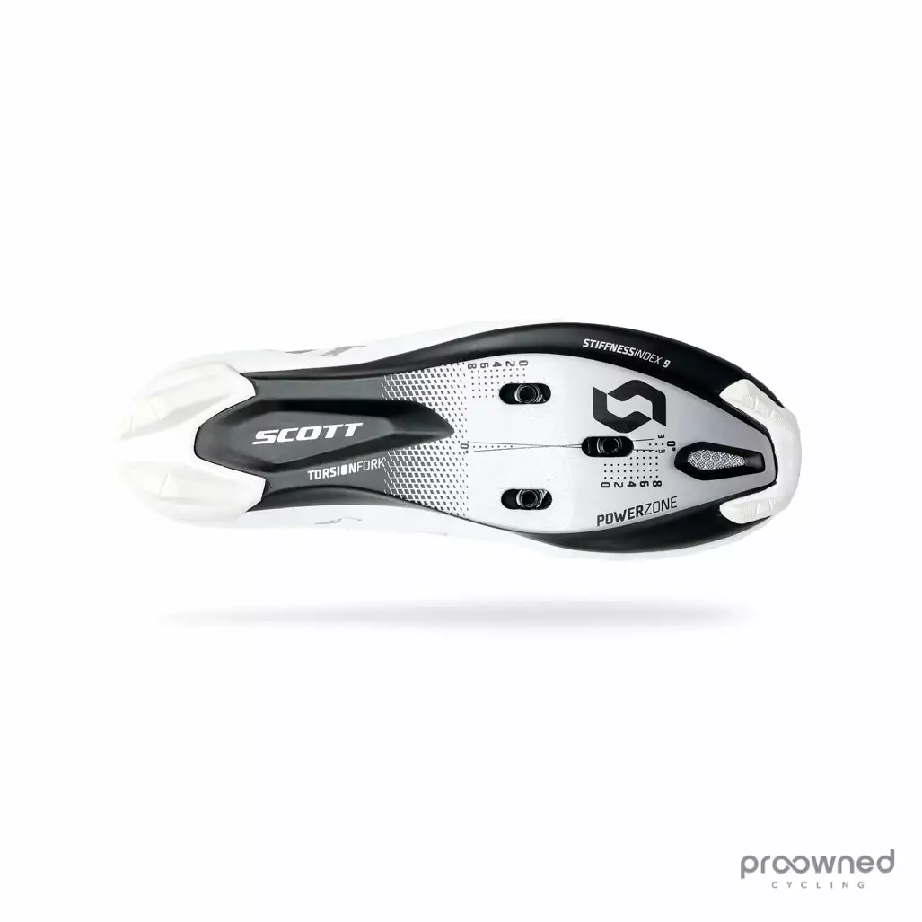 The Scott cycling shoe is a high-performance road cycling shoe that features high stiffness, mainly because of a super stiff and light carbon sole.