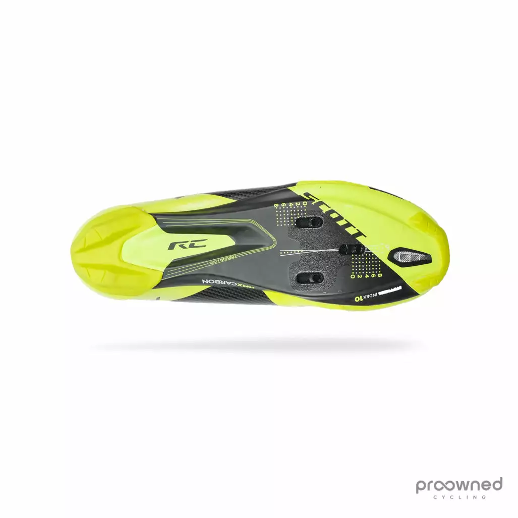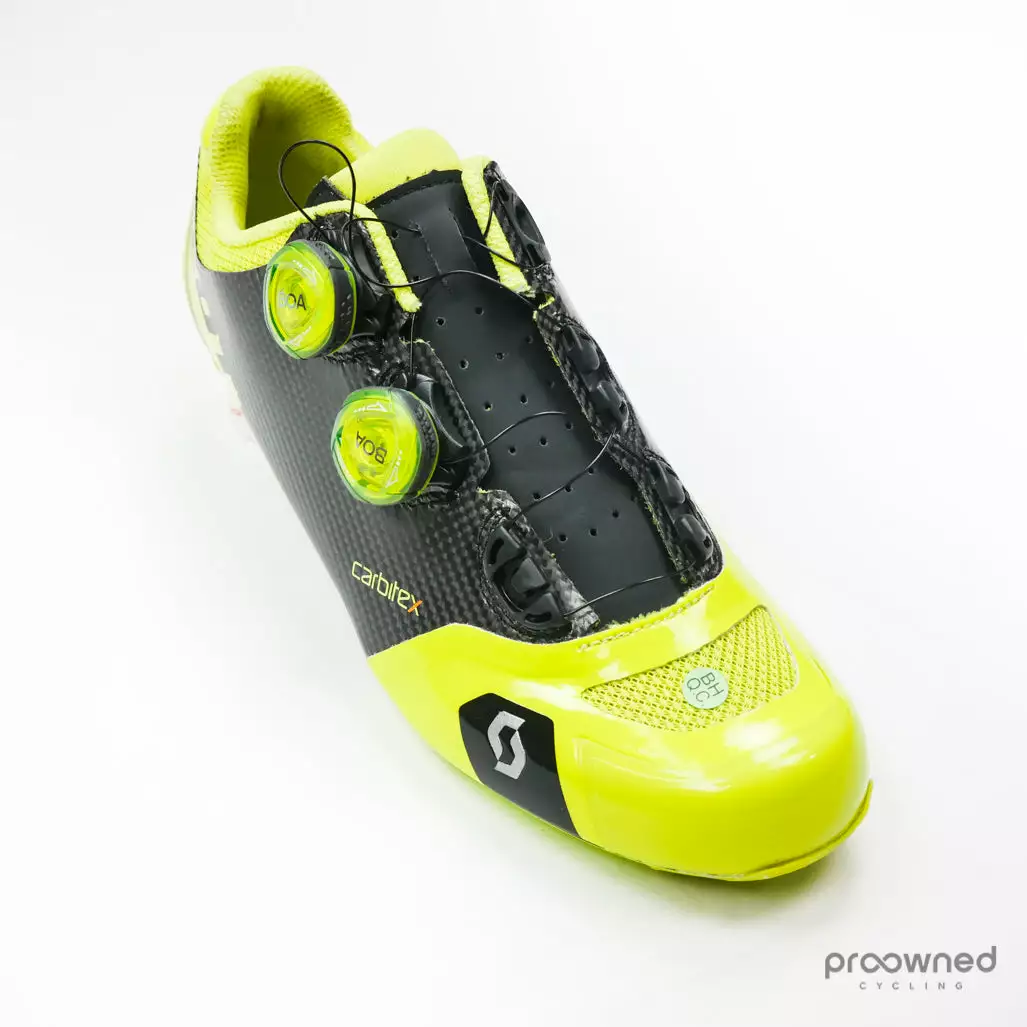 The Scott cycling shoe is a high-performance road cycling shoe that features high stiffness, mainly because of a super stiff and light carbon sole.