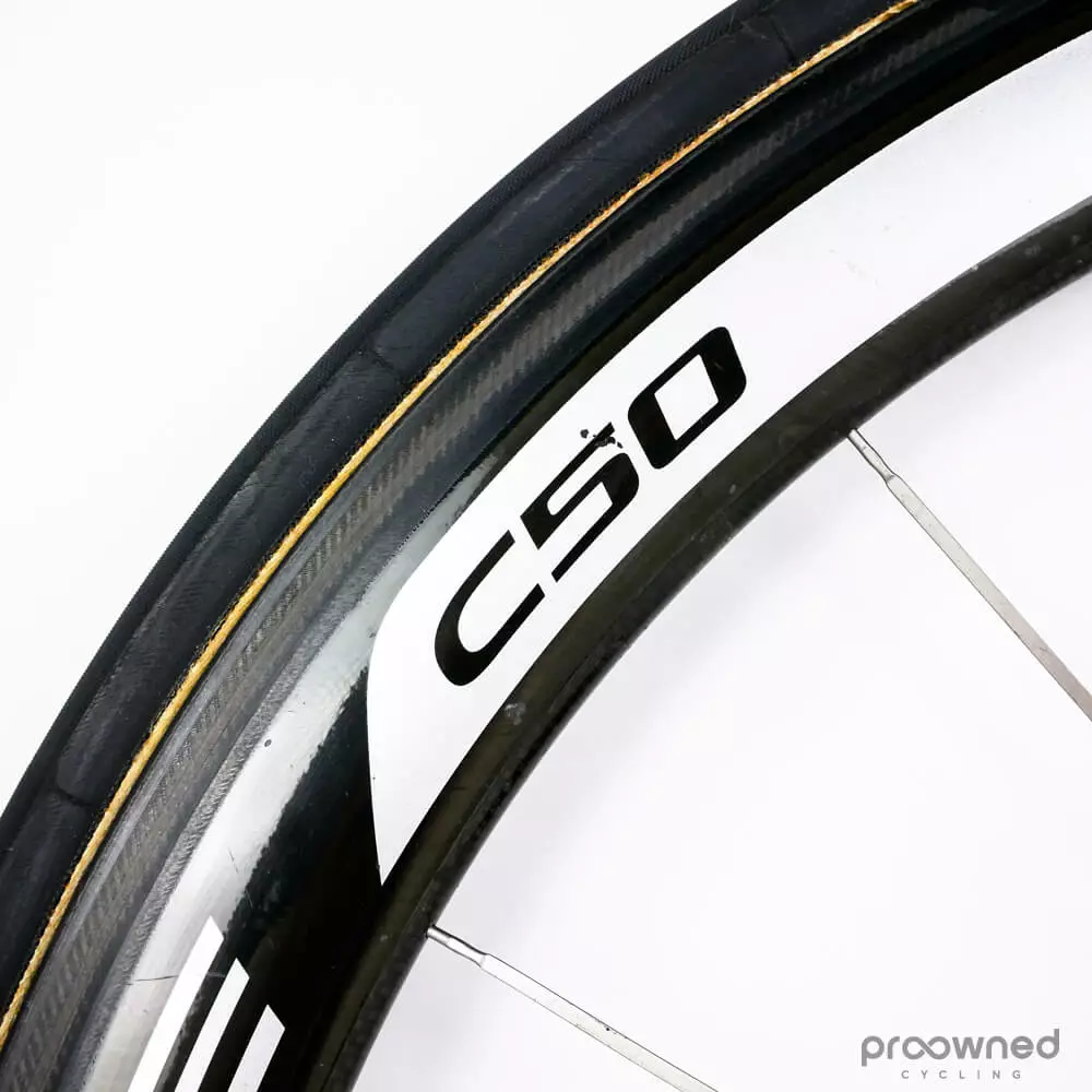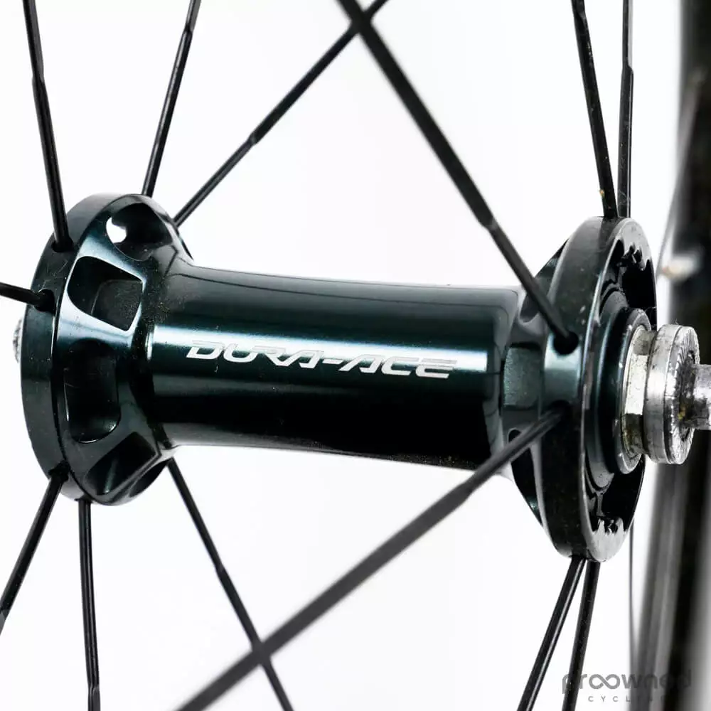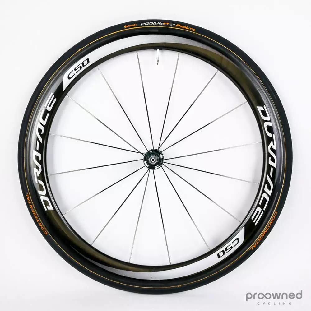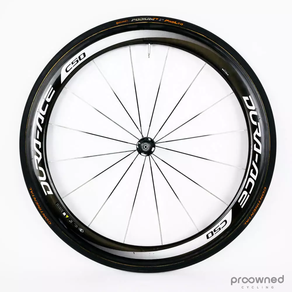 Shimano Dura-Ace C50 carbon tubular front wheel.