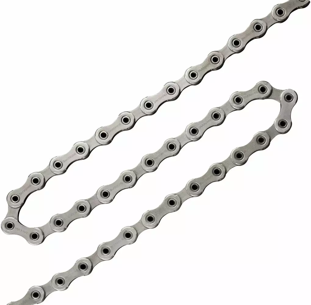 Shimano 11-speed CN-HG901. This directional chain features a special asymmetric plate design and Shimano’s new SIL-TEC surface treatment which gives you a quieter ride, increased chain life and better performance.