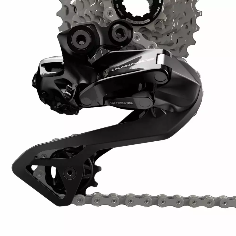 The rear derailleur is connected to the battery via a cable, from which there is also a cable to the front derailleur and, if applicable, to his STI. It has a charging port and the circuit can be easily charged with the appropriate charging cable. In racing and training use, the RD-R9250 impresses with extremely fast switching speeds that clearly exceed those of its predecessor. Its flat shadow design reduces the risk of snagging and optimizes shifting.