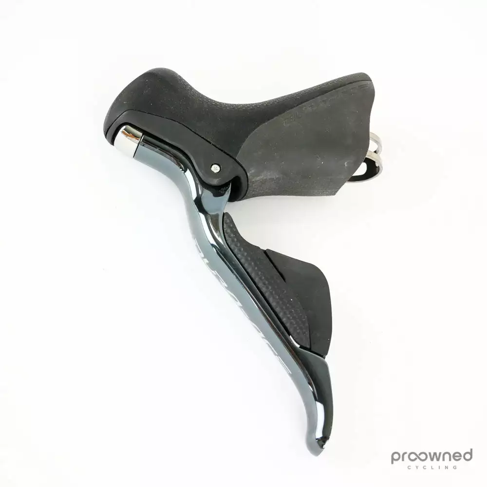 Shimano Dura-Ace Di2 9070 left shifter. State of the art Di2 electronic technology for instant, accurate shifts every time, at the push of a button. Leading-edge design, materials and construction reduce weight, improve stiffness and enhance control. 11-speed compatible, with enhanced feedback and improved ergonomics for easier access to the shift buttons on top of the hoods.