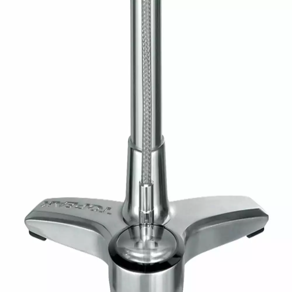 The SmartHead® ThreadLock hose head, which fits Presta and Schrader valves, has been added to make tyre inflation simple. Maximum stability is added by the machined aluminium base, and a long braided metal hose easily reaches bikes that are placed on the workstand.